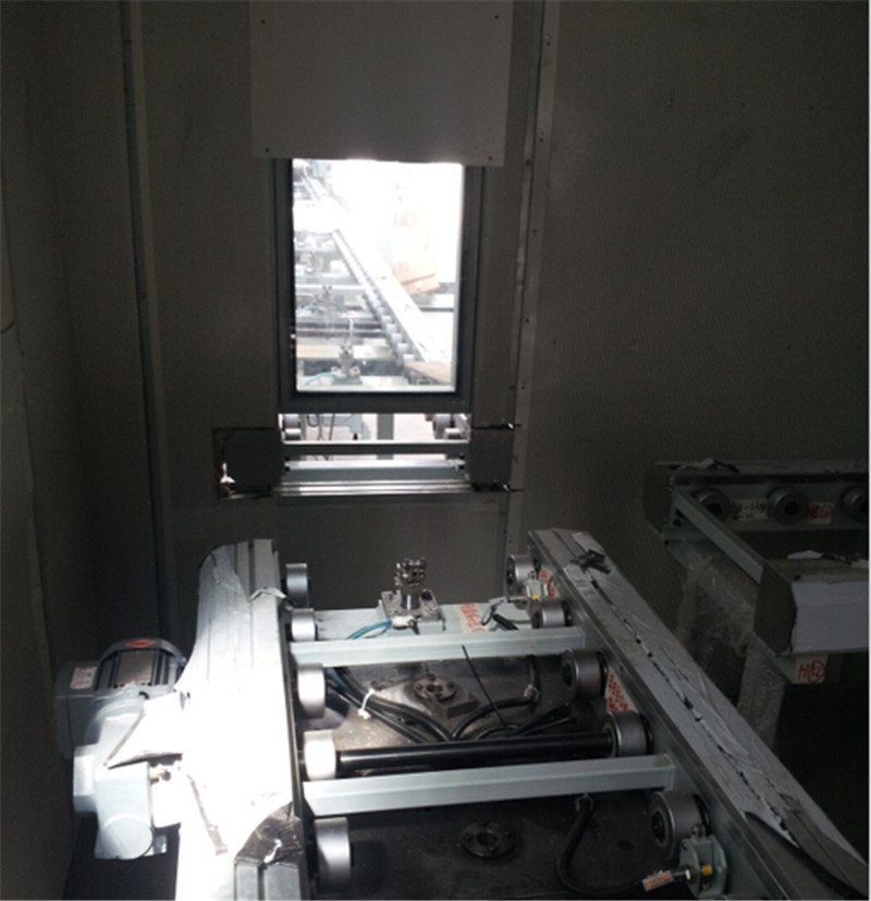 工程難點:本項目中隔音房要有線體穿過,并且保證線體上工件自動進入隔音房。我公司根據(jù)甲方的要求在隔音房的合適位置設置自動升降隔音門,實現(xiàn)與甲方線體的統(tǒng)一工作。